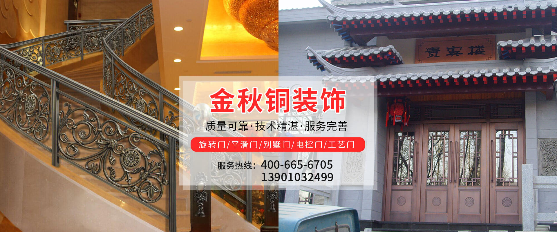 北京金秋銅裝飾材料有限公司是專業(yè)生產銅裝飾材料及設計、開發(fā)、制造、施工、售后服務為一體的大型綜合企業(yè)??沙薪咏ㄖ~裝飾工程及五星級酒店、別墅、博物館、樓樘管所等高檔銅裝飾項目;生產各種規(guī)格的旋轉門、平滑門、別墅門、電控門、工藝門、旋轉護欄、屋頂銅飾防水瓦、浮雕壁畫......